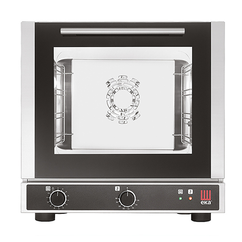 De Horeca heteluchtoven EKA – EKF 423P is één van de basismodellen van onze heteluchtovens. De oven is gemakkelijk in gebruik en in te stellen dankzij het analoge bedieningspaneel.