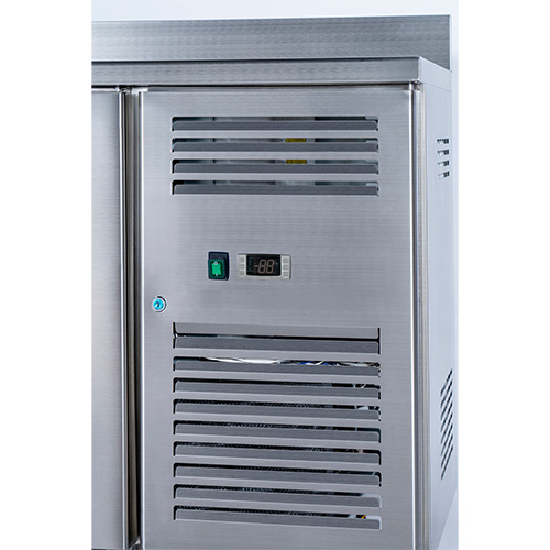 De vrieswerkbank PCN2100 van Select Cuisine Profi heeft 2 deuren en een inhoud van 188 liter netto. Deze mooie koelwerkbank heeft een temperatuurbereik van -18°C tot -22°C en is voorzien van een slot. Dit model heeft verstelbare poten, zodat de koelwerkbank op de gewenste werkhoogte gezet kan worden. In de vrieswerkbank zitten 2 roosters, welke verstelbaar zijn.