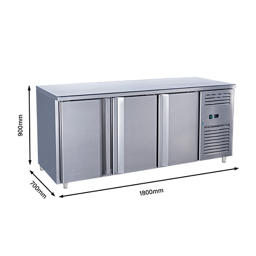 De vrieswerkbank PCN3100 van Select Cuisine Profi heeft 3 deuren en een inhoud van 282 liter netto. Deze mooie vrieswerkbank heeft een temperatuurbereik van -18°C tot -22°C en is voorzien van een slot. Dit model heeft verstelbare poten, zodat de koelwerkbank op de gewenste werkhoogte gezet kan worden. In de vrieswerkbank zitten 3 roosters, welke verstelbaar zijn.