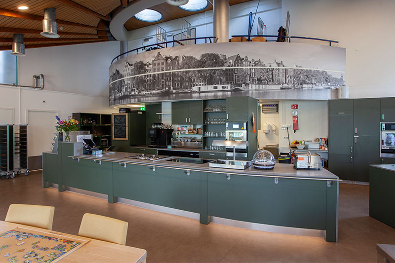 Amsta, locatie De Werf, biedt zorg aan ouderen met dementie en mensen met lichamelijke beperkingen. Bewoners mogen zelf aangeven en bepalen wat ze willen. Hiermee bieden ze maximale zelfstandigheid aan de bewoners. Van Gestel heeft zowel de kleinschalig wonen keukens als de grand café keuken mogen leveren.
