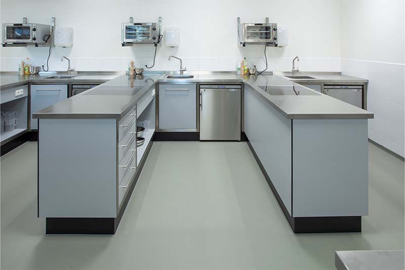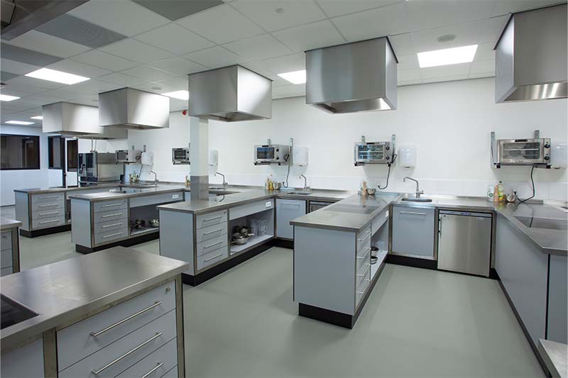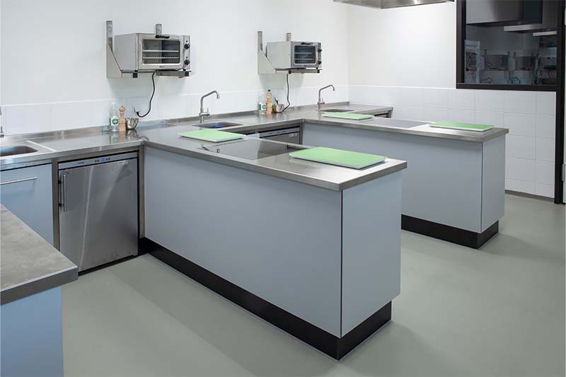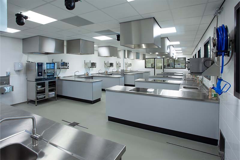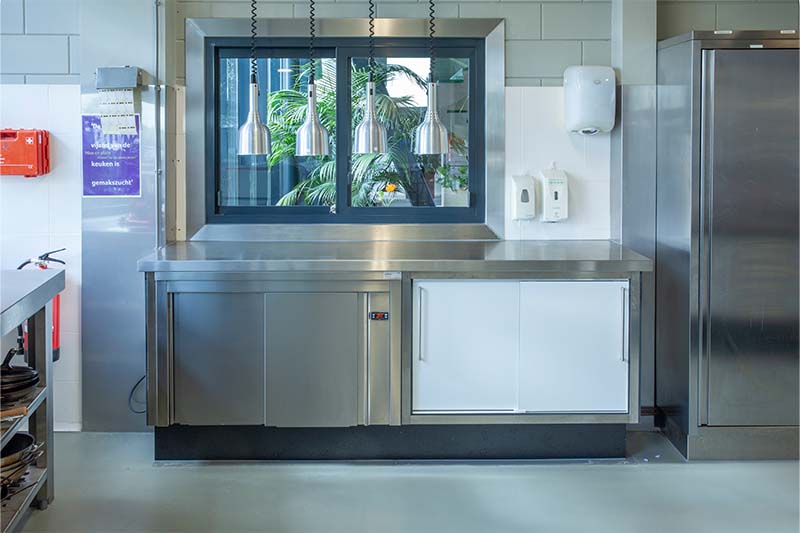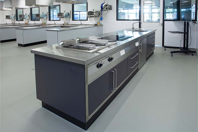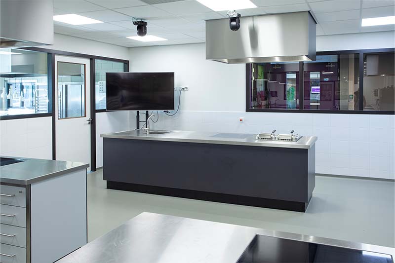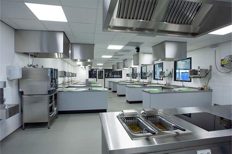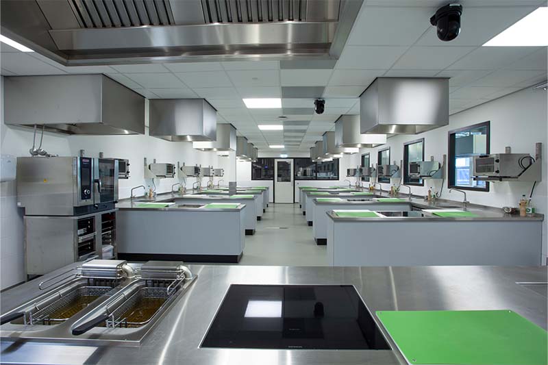 Met de lesunits wordt de praktijk optimaal gesimuleerd. De units beschikken over een vlakdekkende inductie die gelijk is met het werkblad. Daarnaast is de keuken voorzien van de laatste trends, met onder andere een een iDeck pizzaoven van Moretti Forni. Ingebouwde koel- en warmhoudvitrines, een combisteamer, diverse koel- en vrieskasten en een houtskoolgrill zorgen er mede voor dat de studenten van SVO perfect klaargestoomd worden voor de praktijk!