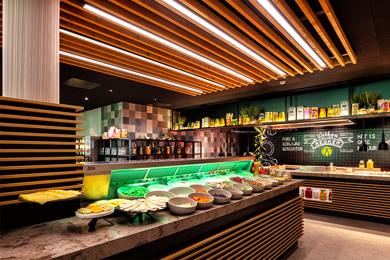 We leven in een tijd van flexibele werkplekken, variabele werktijden en aandacht voor gezondheid en duurzaamheid. Door deze nieuwe manier van werken vindt er meer beweging plaats binnen uw organisatie. Het bedrijfsrestaurant speelt hierdoor een steeds belangrijkere rol. Opladen, ontspannen, ontmoeten; slechts enkele elementen waar u waarschijnlijk meteen aan denkt als het gaat om een bedrijfsrestaurant. Wij denken graag met u mee over indeling hiervan, de invulling van uw restaurant en dat alles in een juiste routing. Wij hebben al verscheidene bedrijfsrestaurants mogen inrichten. Laat u inspireren!